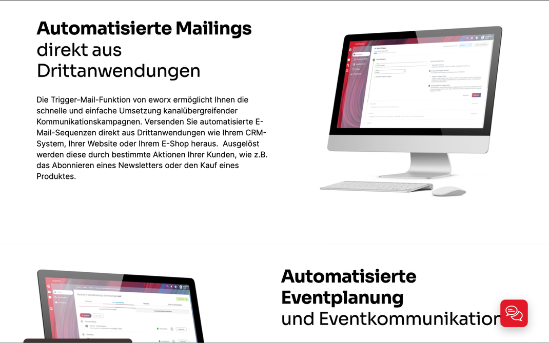 Die direkte Einbindung von Mailworx-Formularen auf der Website erleichtert die Kommunikation und Interaktion mit den Nutzer:innen. Diese Funktion ermöglicht eine nahtlose Erfassung und Verwaltung von Kundenanfragen und Feedback, wodurch die Nutzererfahrung weiter verbessert wird.