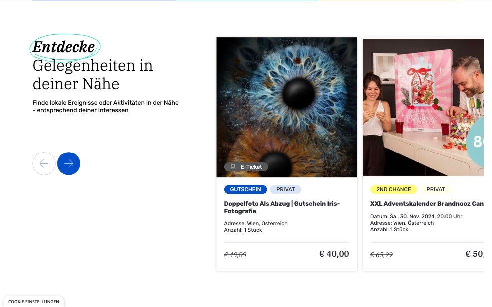 Die Kategorie Gutscheine umfasst sämtliche Gutscheine, die nicht an eine Person oder einen festen Termin gebunden sind. Nutzer können hier flexibel einsetzbare Gutscheine für Restaurants, Geschäfte oder Erlebnisse wie Freizeitparks und Wellness verkaufen und kaufen. Die Flexibilität dieser Gutscheine macht sie für viele Käufer besonders attraktiv, da sie nicht an bestimmte Bedingungen gebunden sind.