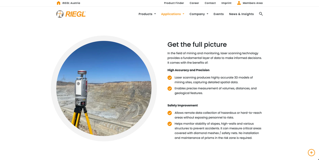 RIEGL zählt zu den internationalen Technologieführern für Laserscanning und betreibt Niederlassungen weltweit. Für den globalen Web-Auftritt haben wir von Cyberhouse eine Plattform geschaffen, die alle Informationen rund um die umfangreiche Produktwelt klar strukturiert, jederzeit aktuell und für jedes Land optimal auffindbar präsentiert.
